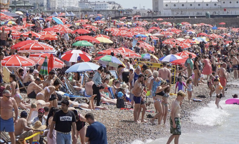 Στην Βρετανία κηρύχθηκε για πρώτη φορά «κόκκινος συναγερμός» για ακραίες θερμοκρασίες.Σήμερα που η ζέστη είναι ήδη πολύ αισθητή χιλιάδες Βρετανοί έσπευσαν στις παραλίες αναζητώντας λίγη δροσιά δημιουργώντας το αδιαχώρητο .