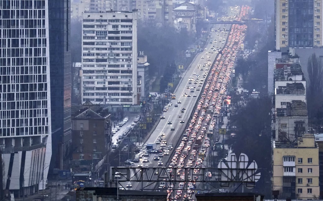 Αν και αυτή την στιγμή υπάρχει ησυχία στη πρωτεύουσα της Ουκρανίας πολλοί κάτοικοι έφυγαν με τα αυτοκίνητα τους φοβούμενοι προφανώς Ρωσικούς βομβαρδισμούς.