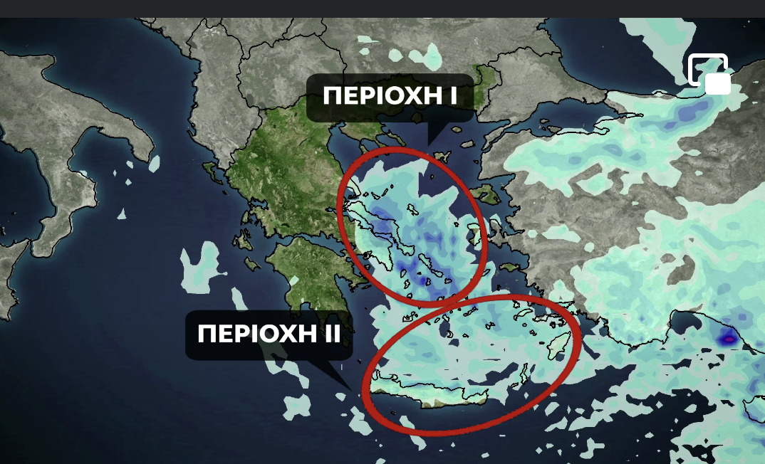 Στον χάρτη που ακολουθεί επισημαίνουμε τις περιοχές με τον πιο “βαρύ” καιρό και που πολύ πιθανόν να δημιουργηθούν προβλήματα.