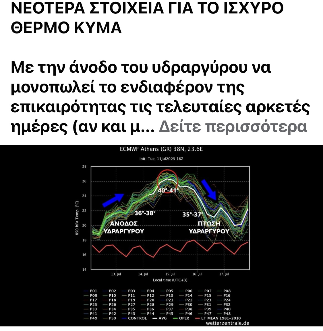 ΝΕΟΤΕΡΑ ΣΤΟΙΧΕΙΑ ΓΙΑ ΤΟ ΙΣΧΥΡΟ ΘΕΡΜΟ ΚΥΜΑ: Με την άνοδο του υδραργύρου να μονοπωλεί το ενδιαφέρον της επικαιρότητας τις τελευταίες αρκετές ημέρες (αν και μέχρι στιγμής βρισκόμαστε σε πολύ φυσιολογικές συνθήκες – μάλλον μας έχει πιάσει το σύνδρομο του φόβου βλέποντας τι γίνεται λίγο πιο δυτικά μας), θα προσπαθήσουμε να προσεγγίσουμε άλλη μια φορά την όλη κατάσταση μήπως και δούμε λίγο πιο ομαλά το όλο θέμα.