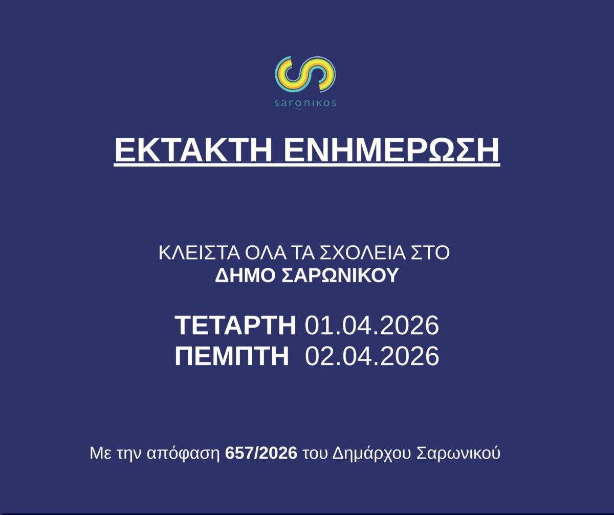 Αντίστοιχα, ο Δήμος Σαρωνικού γνωστοποίησε ότι τα σχολεία σε όλες τις βαθμίδες θα παραμείνουν κλειστά για τις ίδιες ημέρες, με στόχο την ασφάλεια μαθητών, γονέων και εκπαιδευτικών.