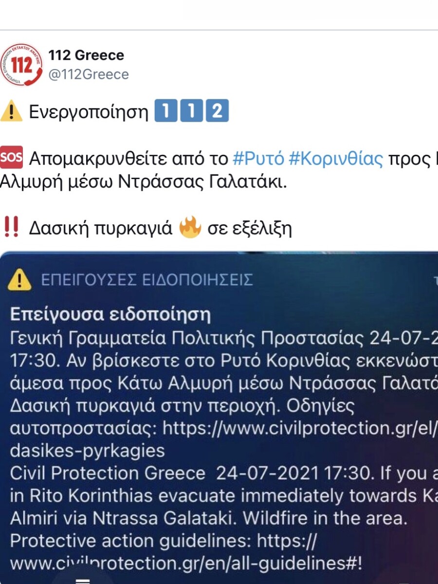 Για λόγους ασφαλείας το χωριό Ρυτό έχει ήδη εκκενωθεί.Το μήνυμα  προς όσους πολίτες βρίσκονται στο οικισμό του Ρυτού Κορινθίας να απομακρυνθούν για προληπτικούς λόγους από την περιοχή απεστάλη το απόγευμα του Σάββατου μέσω γραπτού μηνύματος (SMS) από την υπηρεσία Έκτακτης Ανάγκης 112 της Γενικής Γραμματείας Πολιτικής Προστασίας.