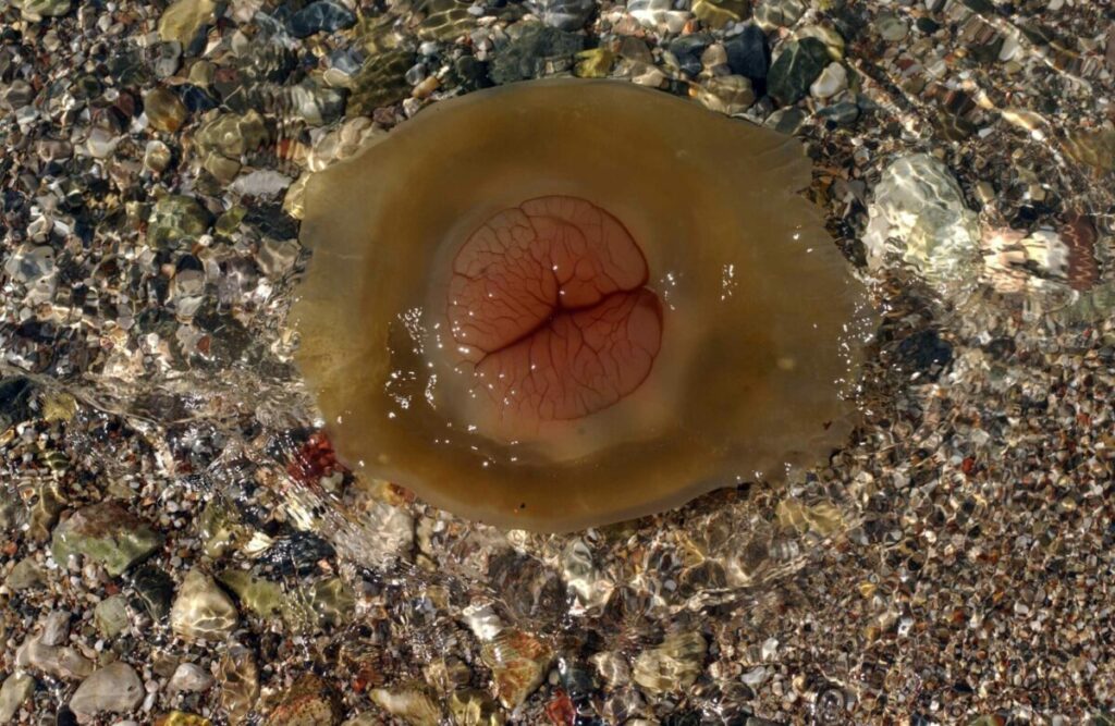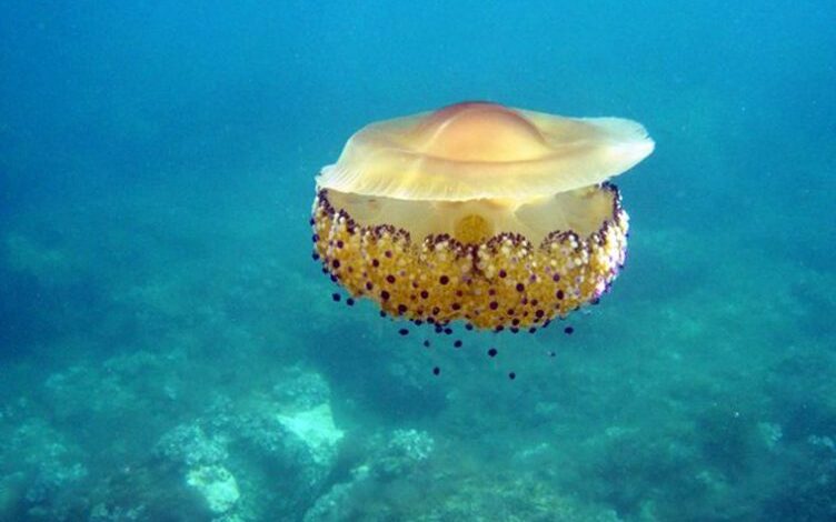 Πρόκειται για μέδουσες “Cotylorhiza tuberculata”το οποίο εμφανίζεται στα νερά της χώρας μας εδώ και περίπου 50 χρόνια.
