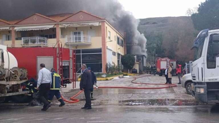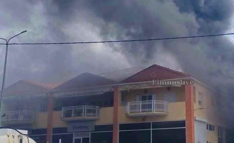 Φωτιά ξέσπασε σήμερα το μεσημέρι σε αντιπροσωπεία αυτοκινήτων στη Λήμνο.