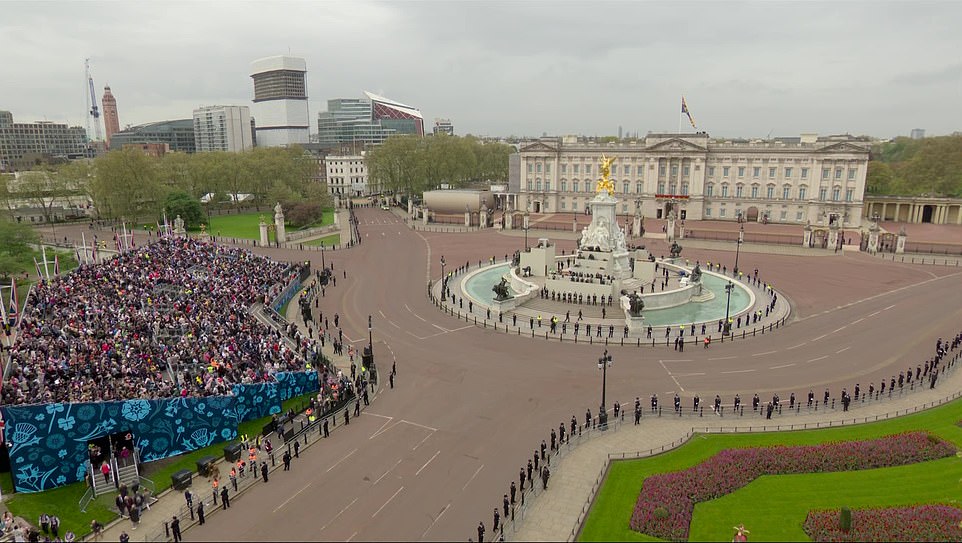 Το Λονδίνο είναι γιορτινά σημαιοστολισμένο με τις live εικόνες από όλη τη διαδικασία της τελετής να κάνουν τον γύρο του κόσμου .