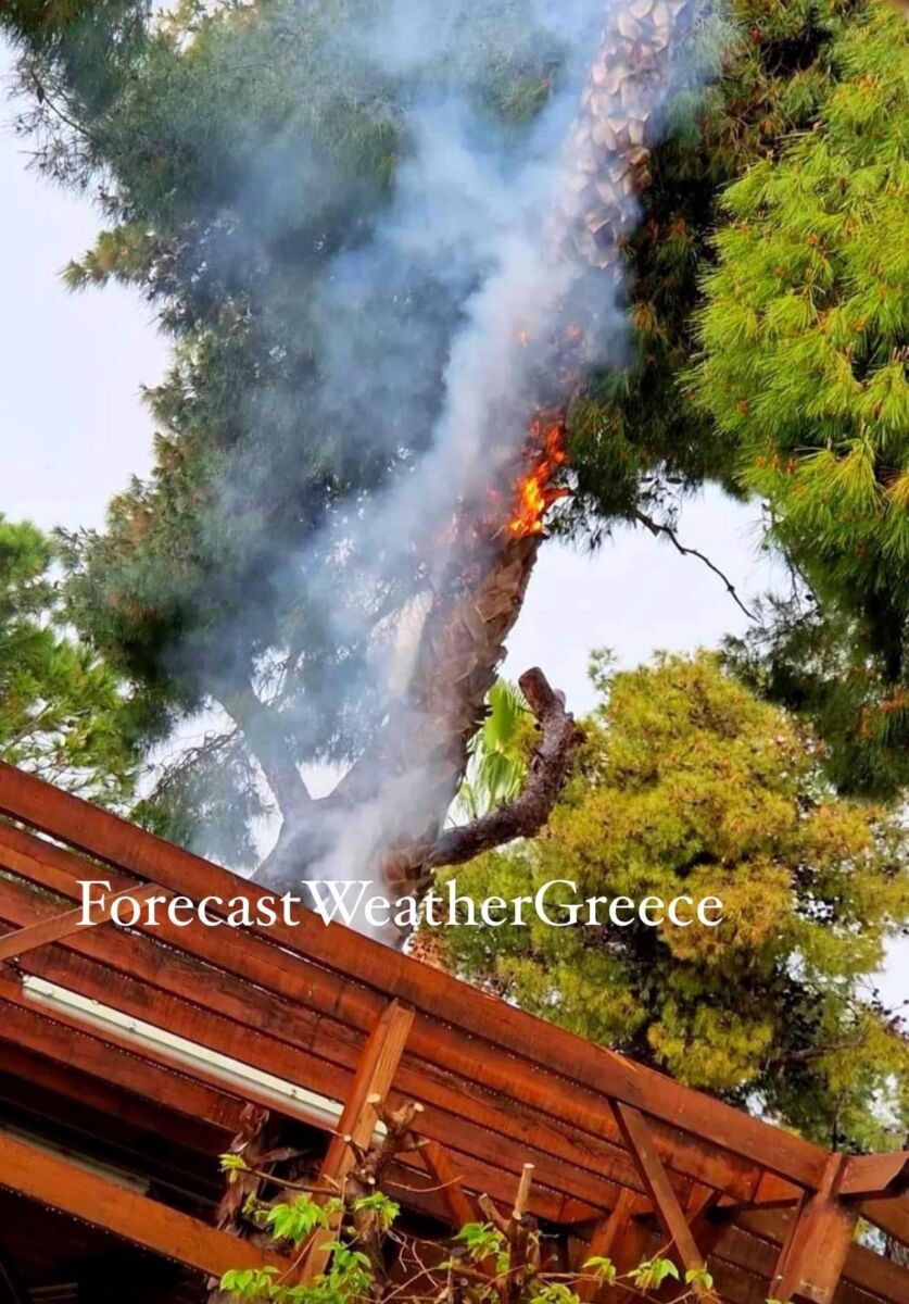 Μαρούσι: Κεραυνός έπεσε δίπλα σε κεντρική καφετέρια – Φωτιά σε δέντρα ( Φωτό )