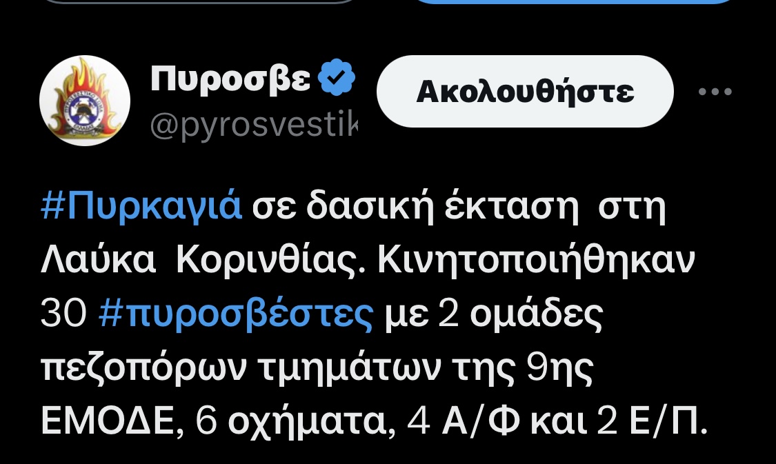 Φωτιά εκδηλώθηκε το απόγευμα της Δευτέρας σε δασική έκταση στη Λαύκα Κορινθίας.
