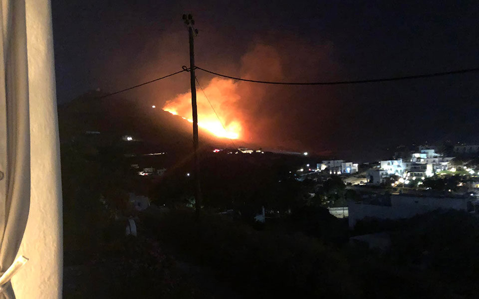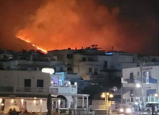 Μεγάλη φωτιά στην Πάρο στους πρόποδες του Αγίου Αντωνίου από την πλευρά του Μώλου