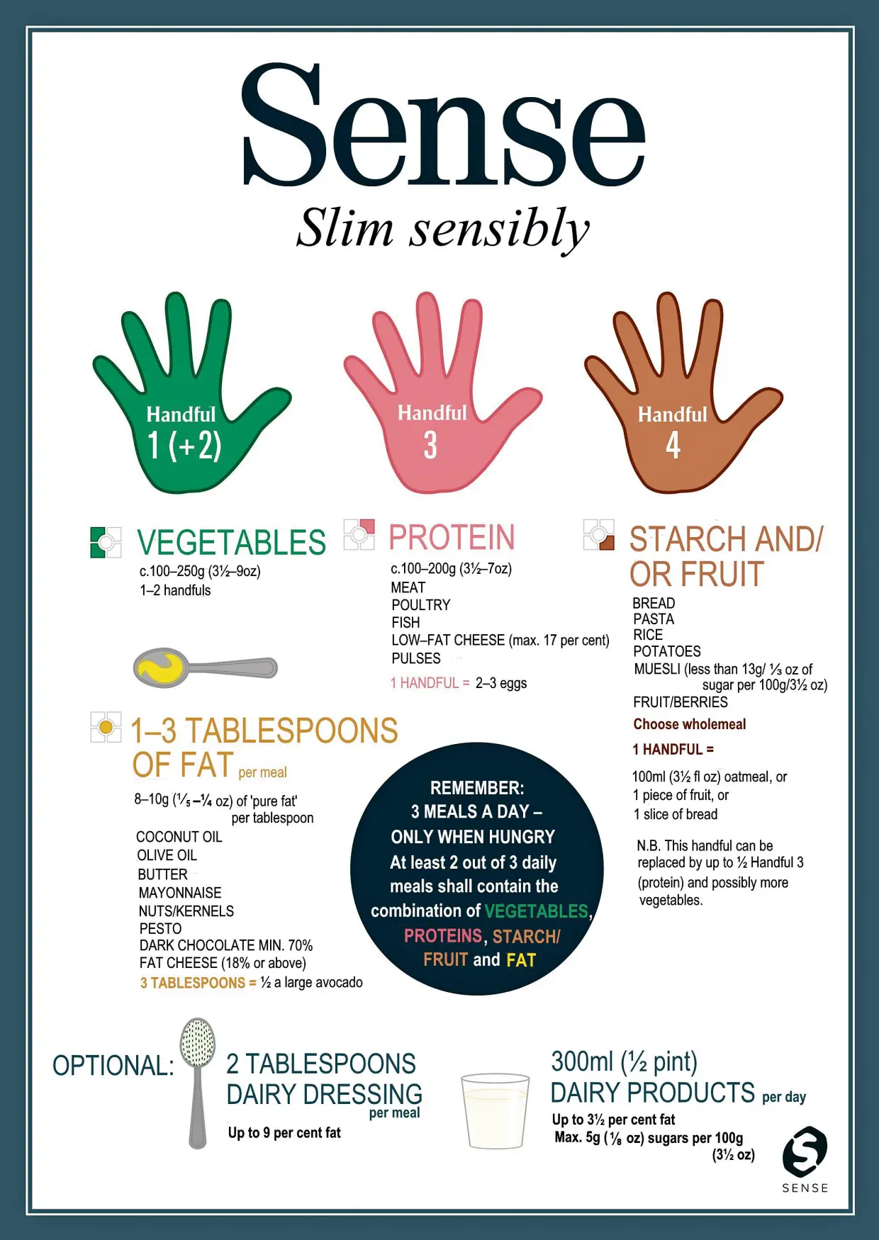 Η φιλοσοφία είναι απλή καθώς κάθε γεύμα στην συγκεκριμένη δίαιτα αποτελείται από τέσσερις χούφτες με φαγητό.