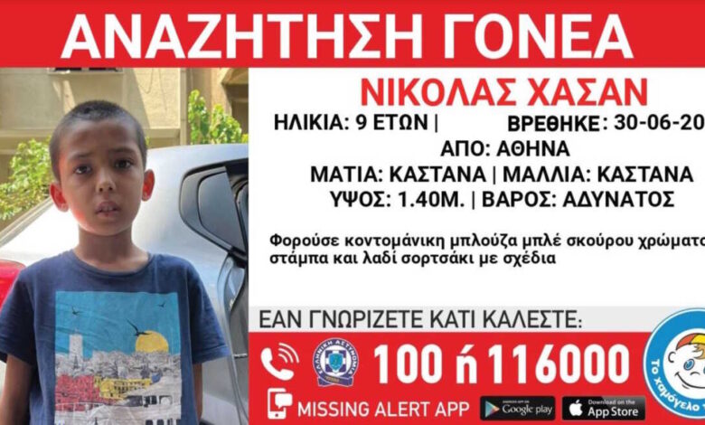 Πρόκειται για τον Νικόλα Χασάν, τον οποίο βρήκαν να περιπλανιέται μόνος του ευαισθητοποιημένοι πολίτες, οι οποίοι άμεσα ενημέρωσαν τις αστυνομικές αρχές και το «Χαμόγελο του Παιδιού».