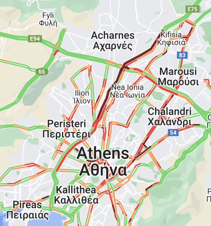 10'-15' από κόμβο Ηρακλείου έως Πεντέλης.