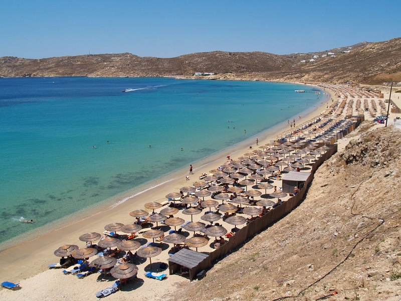 Είναι μια από τις πιο δημοφιλείς και οργανωμένες παραλίες της Μυκόνου, μόλις περίπου 4–5 χλμ από τη Χώρα. Απλώνεται σε έναν πλατύ κόλπο με χρυσαφένια άμμο και ρηχά, ήρεμα, κρυστάλλινα νερά, ιδανικά για οικογένειες, ζευγάρια και νεολαία. Η παραλία περιβάλλεται από πολυτελή ξενοδοχεία, ταβέρνες και beach bars που προσφέρουν ξαπλώστρες, ομπρέλες και υψηλής ποιότητας υπηρεσίες. Από εδώ ξεκινούν θαλάσσια ταξί προς άλλες διάσημες παραλίες (Παράγκα, Paradise, Super Paradise), ενώ διαθέτει εύκολη πρόσβαση με λεωφορείο.