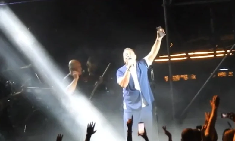 «Μύκονος, are you ready?» και κρατώντας το κινητό του που μετέδιδε live, ξεκίνησε να τραγουδάει «Μέχρι το τέλος του κόσμου», που τον χειροκροτούσε.