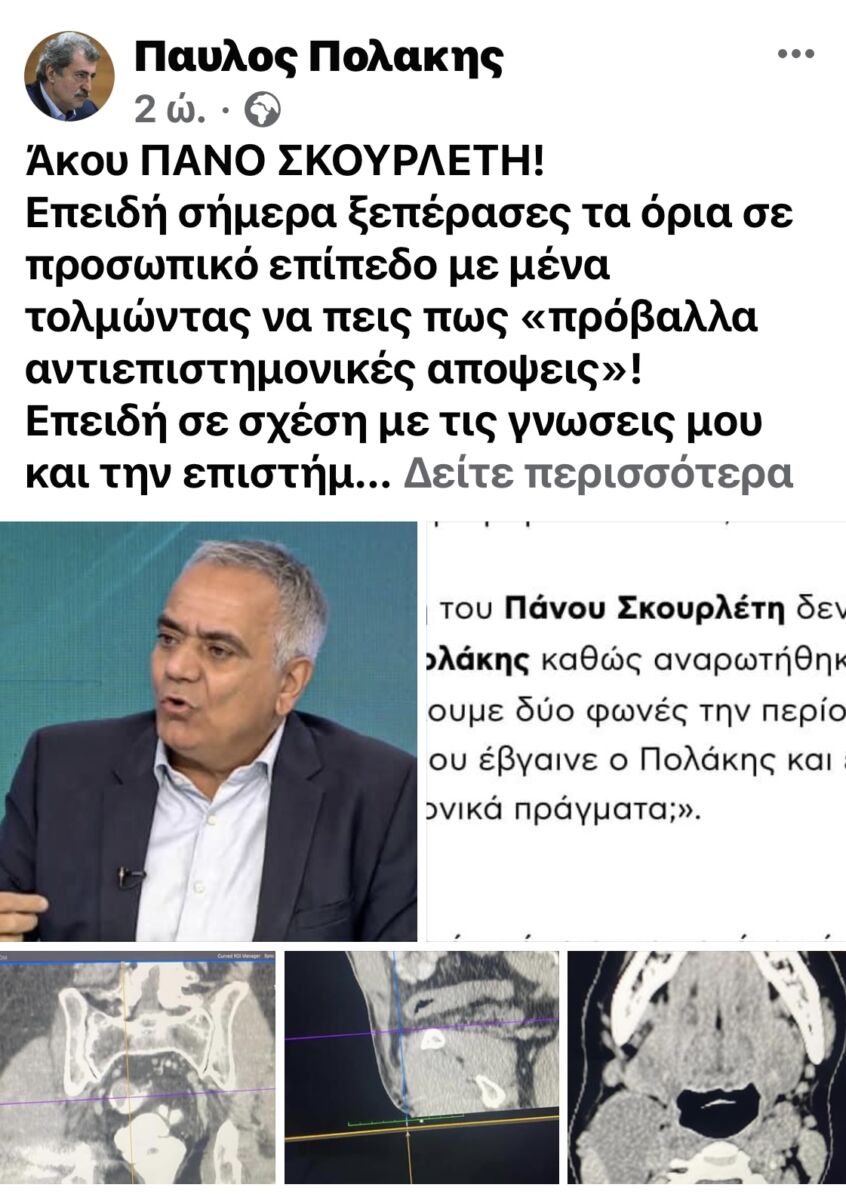 “Άκου ΠΑΝΟ ΣΚΟΥΡΛΕΤΗ! Επειδή σήμερα ξεπέρασες τα όρια σε προσωπικό επίπεδο με μένα τολμώντας να πεις πως «πρόβαλλα αντιεπιστημονικές απόψεις»!