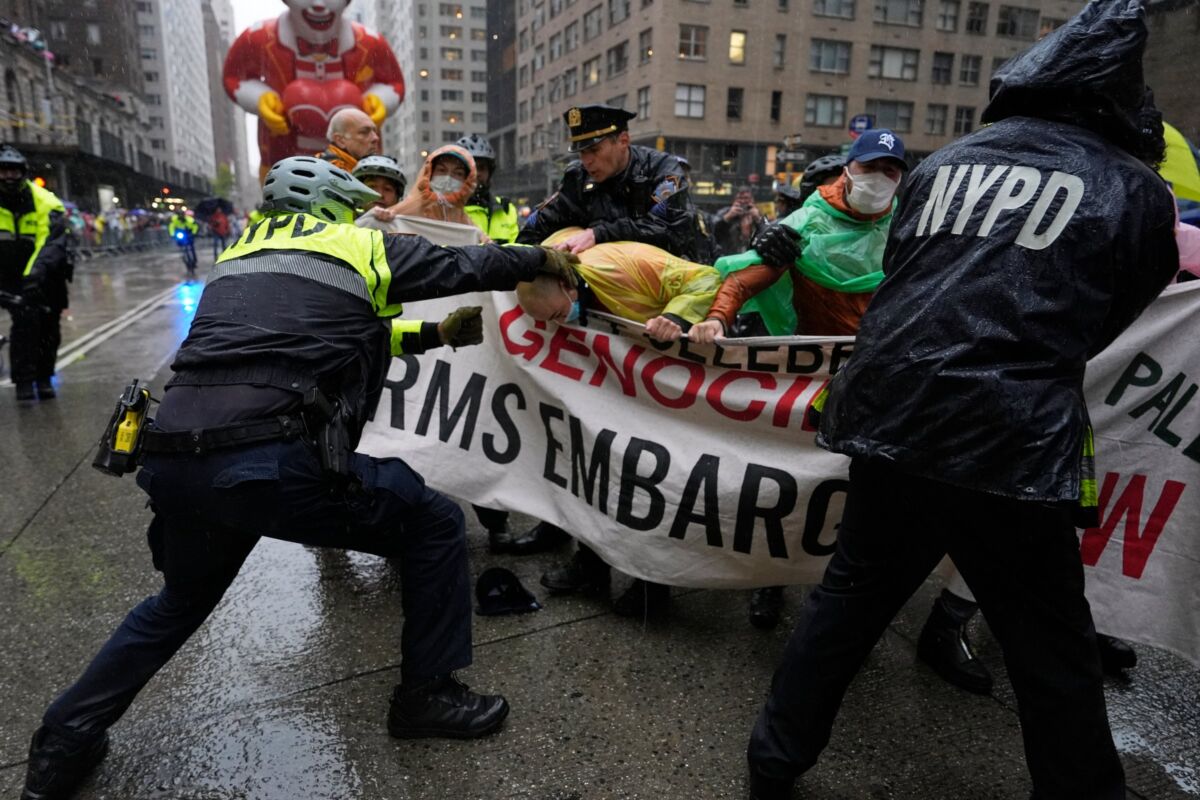 Η αστυνομία της Νέας Υόρκης δήλωσε ότι συνέλαβε τα 21 άτομα.Η Παρέλαση της Ημέρας των Ευχαριστιών του Macy’s συνέχισε την πορεία, παρά τη δυνατή βροχή και την σύντομη διακοπή από τους διαδηλωτές υπέρ της Παλαιστίνης.
