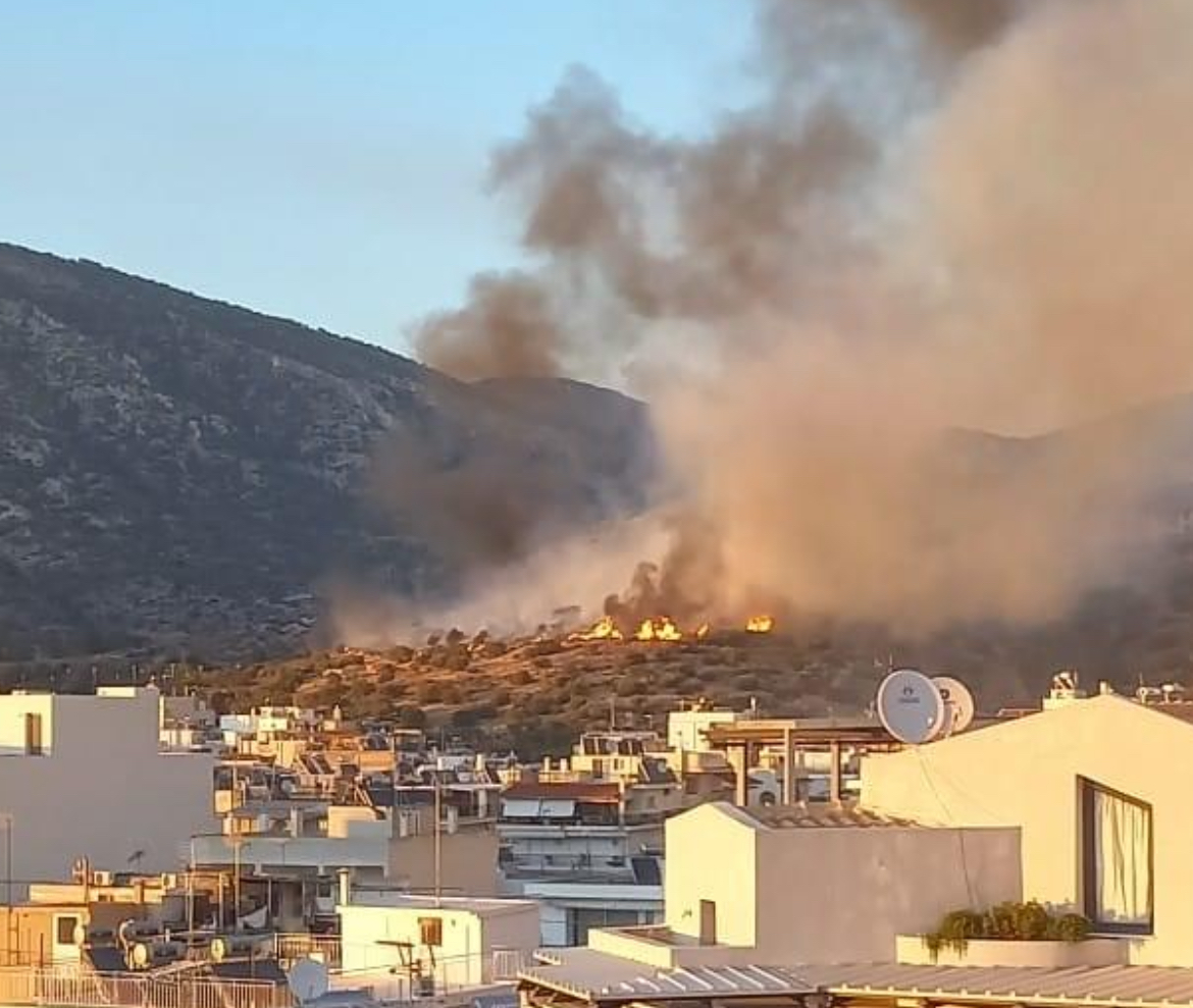 Το μέτωπο της φωτιάς βρίσκεται κάποιες εκατοντάδες μέτρα από την κατοικημένη περιοχή.