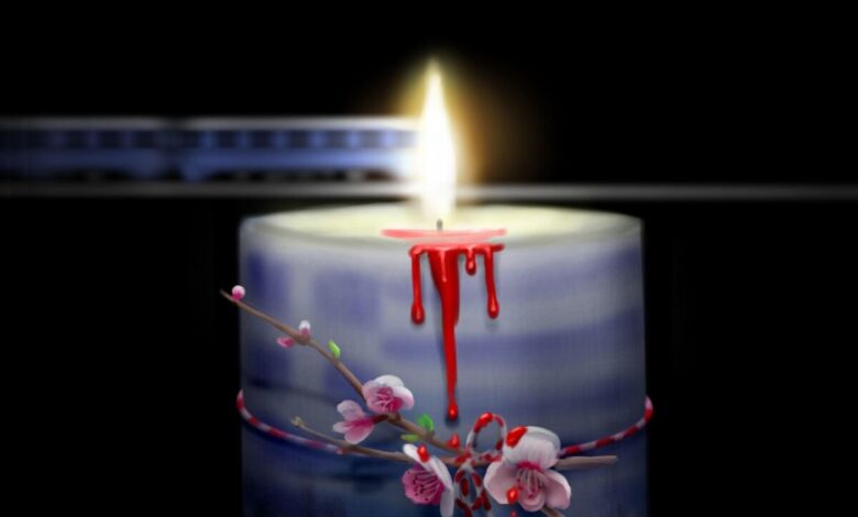 Του ίδιου καλλιτέχνη είναι το παρακάτω το οποίο αποτυπώνει πώς το τρένο, το ασφαλέστερό όπως θεωρείται μέσο μεταφοράς, έγινε φέρετρο για τόσες ψυχές.