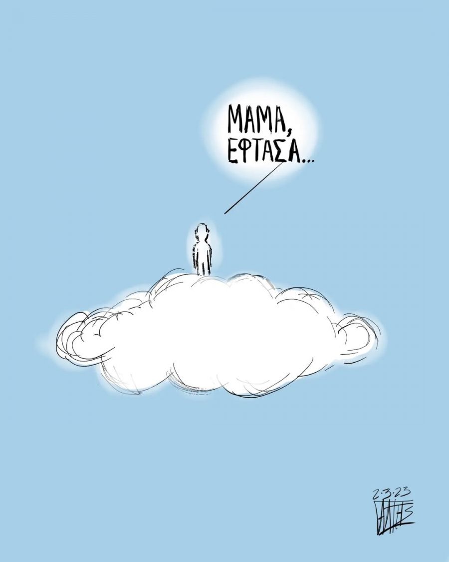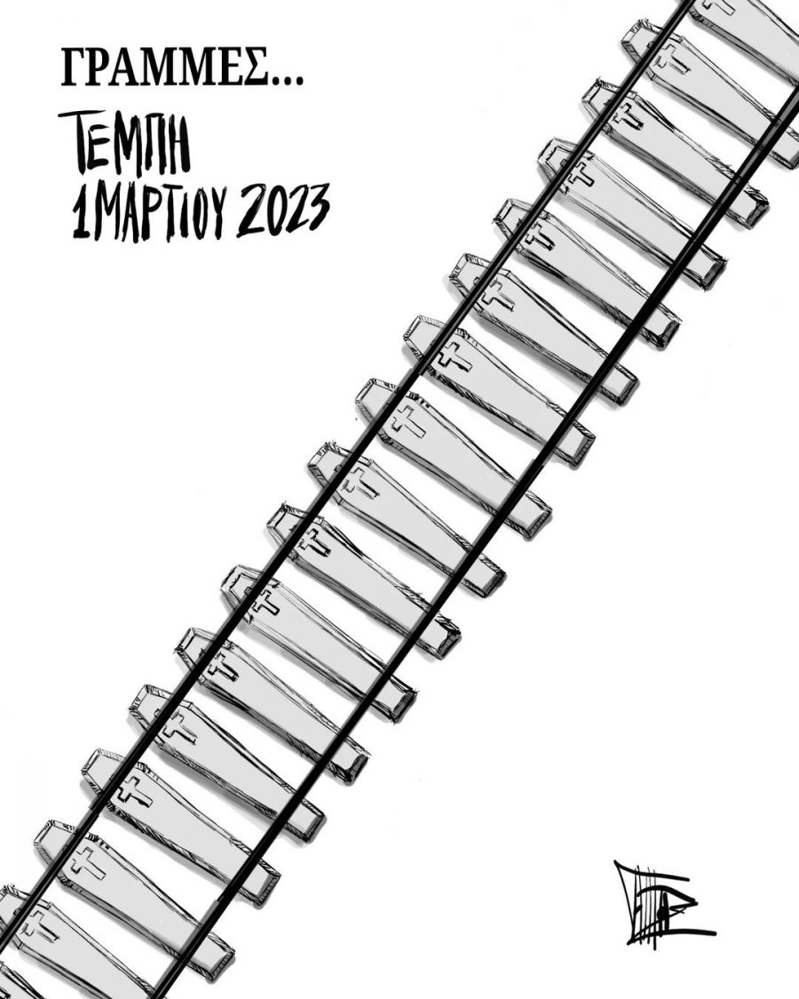Σκίτσα που αποτυπώνουν την τραγωδία τον πόνο και τήν οργή που βασανίζει όλους τους Έλληνες μετά την τραγωδία των Τεμπών.