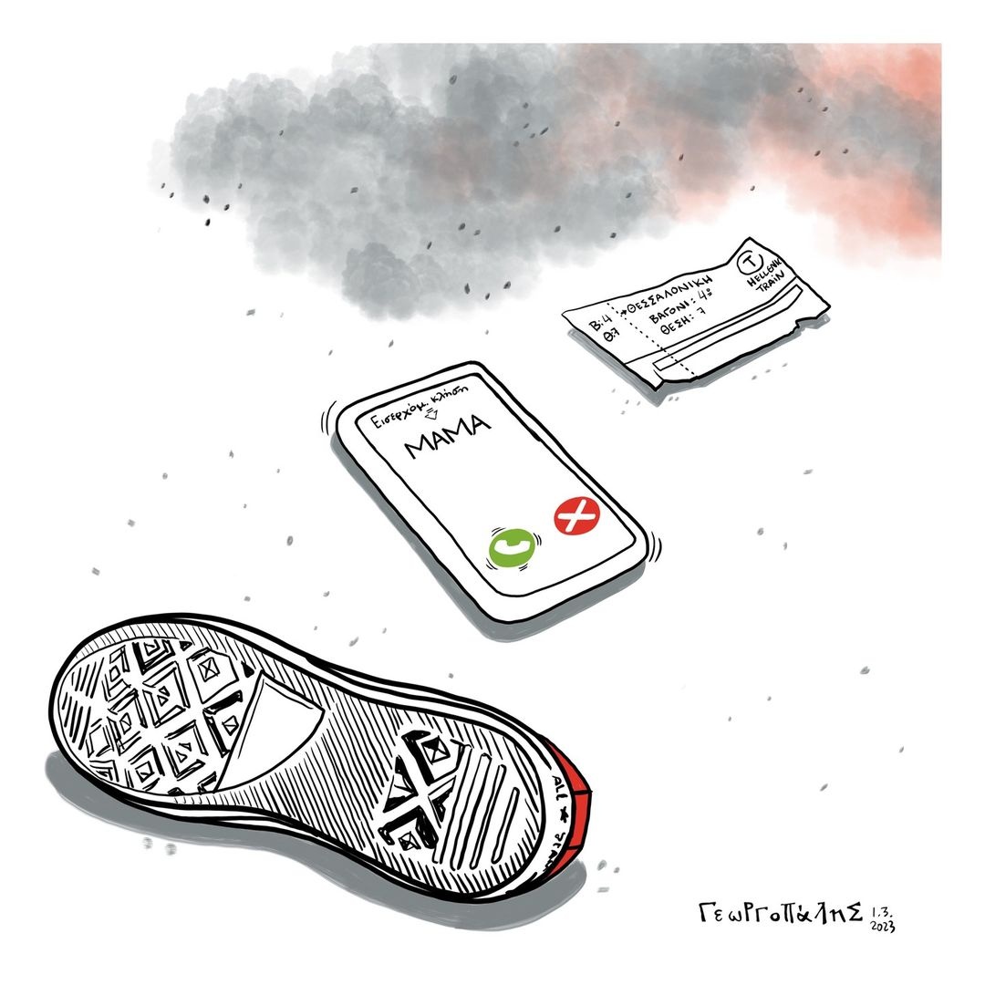 Ακόμα ένα ανατριχιαστικό σκίτσο. Ένα παπούτσι, μία κλήση που μένει αναπάντηση και ένα κομμένο εισιτήριο.