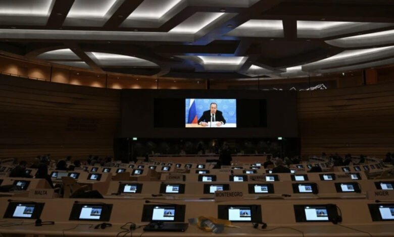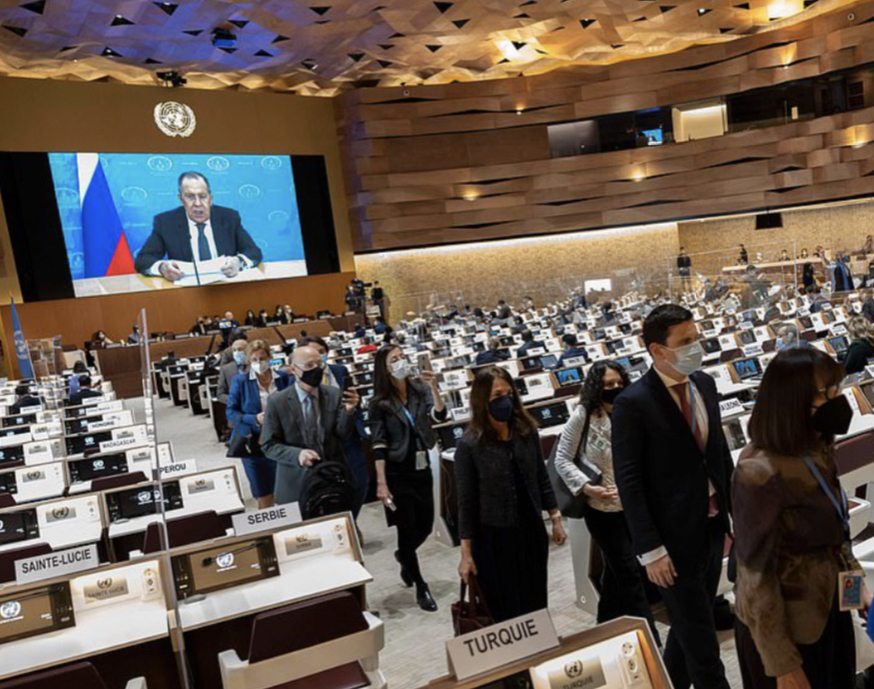 Epic: Dozens of ambassadors and diplomats walk out while Russian FM Sergei Lavrov's pre-recorded video message is played at a U.N. Human Rights Council session at the United Nations office in Geneva #Ukraine