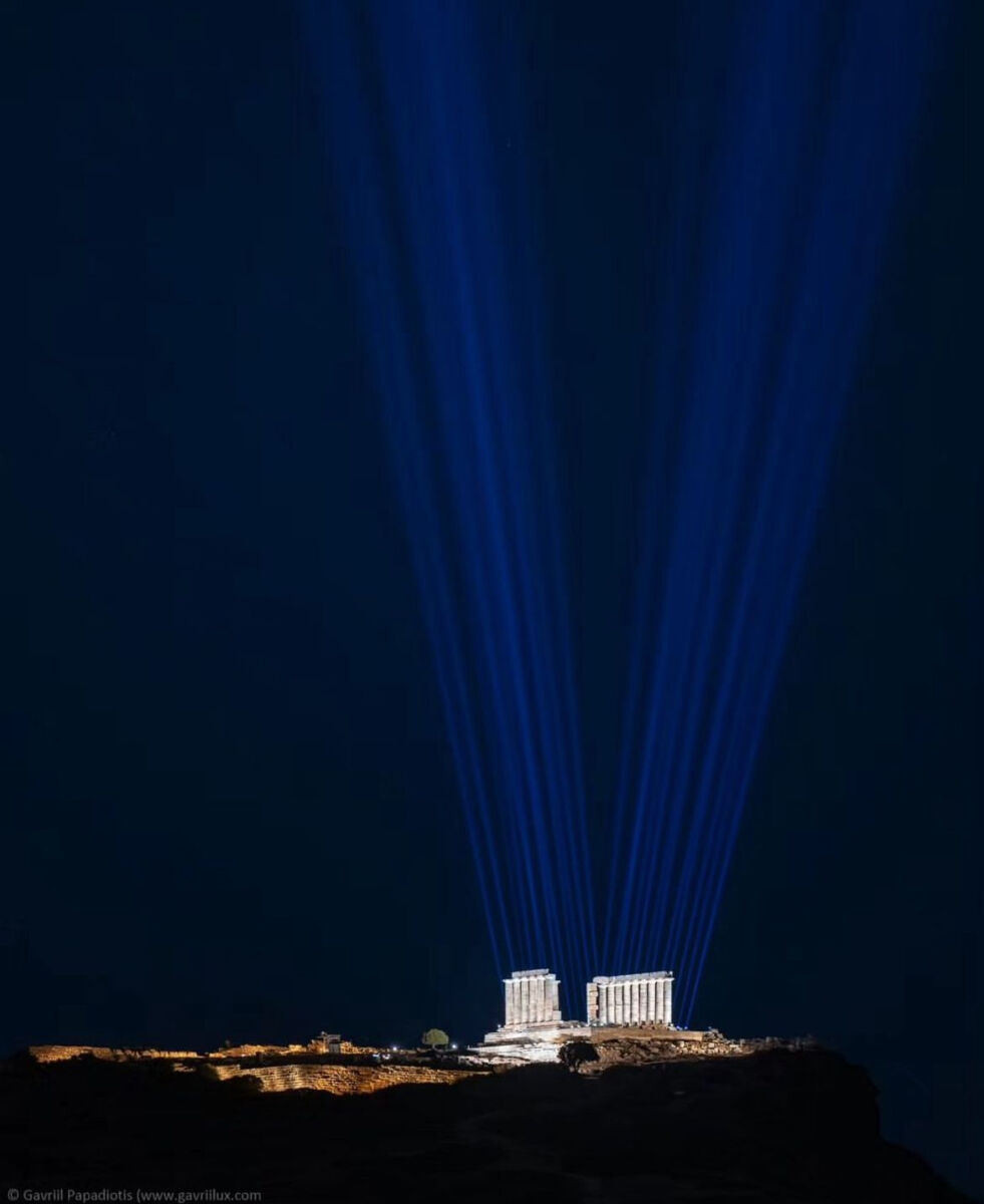 Με τον νέο εντυπωσιακό φωτισμό της Ελευθερίας Ντεκώ, λάμπει από χθες ο επιβλητικός ναός του Ποσειδώνα στο Σούνιο.