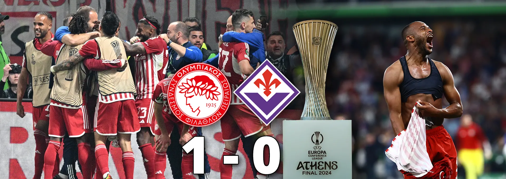 Μετά από 120 λεπτά αγώνα ο Ολυμπιακός νίκησε με 1-0 στον τελικό του Conference League την Φιορεντίνα και έγραψε Ιστορία, καθώς έγινε η πρώτη ελληνική ομάδα που κατακτά ευρωπαϊκό τρόπαιο. Το χρυσό γκολ που έκρινε τον τελικό πέτυχε ο Ελ Κααμπί στο 116΄ της παράτασης (0-0 στα 90 λεπτά του αγώνα).