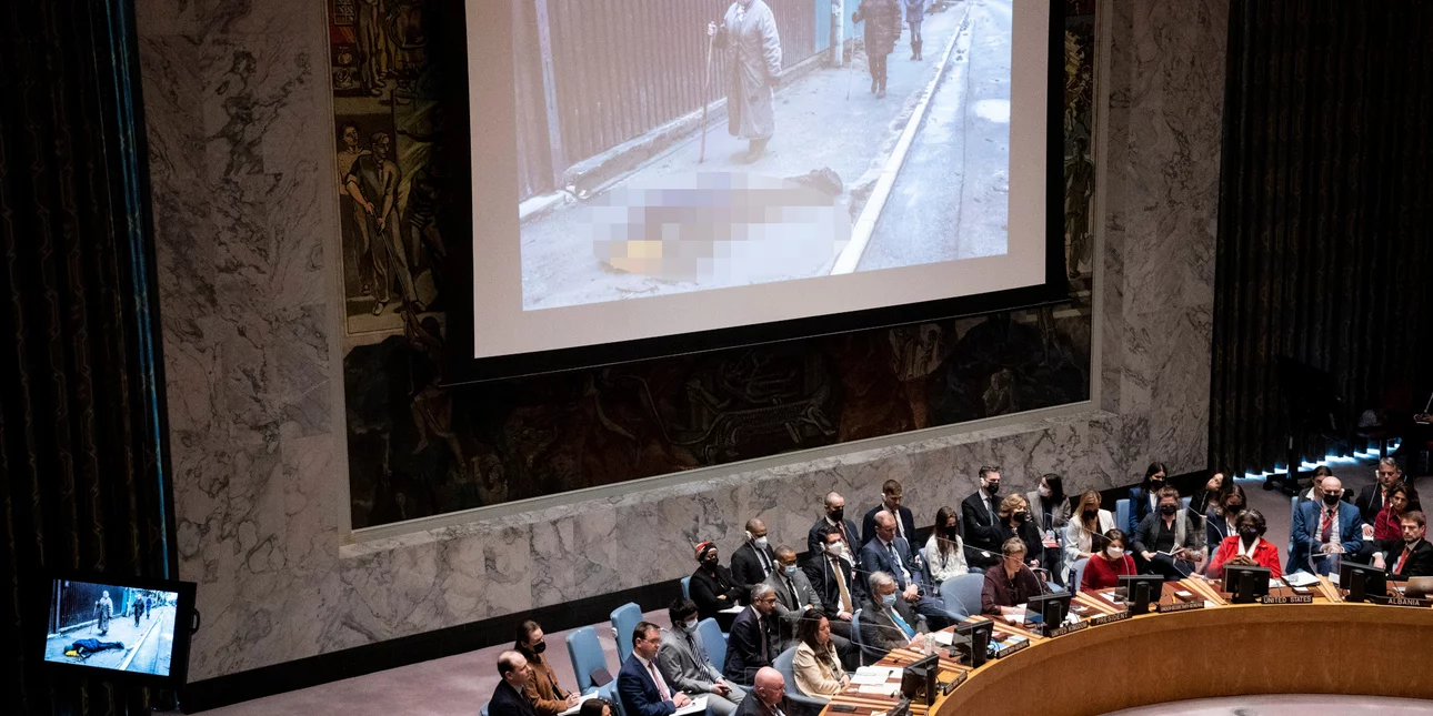 Ο πρόεδρος Ζελένσκι παρομοίωσε τις πράξεις αυτές της Ρωσίας με τις ενέργειες τρομοκρατικών οργανώσεων όπως ο ISIS, αναφέροντας πως η μόνη τους διαφορά είναι ότι οι θηριωδίες στην Ουκρανία γίνονται από μια χώρα-μέλος του Συμβουλίου του ΟΗΕ.
