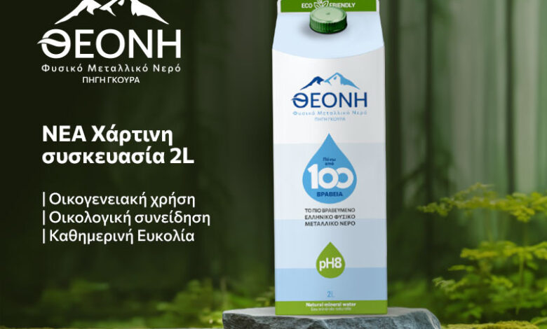 Το Φυσικό Μεταλλικό Νερό ΘΕΟΝΗ, το πιο πολυβραβευμένο ελληνικό νερό παγκοσμίως, λανσάρει τη νέα premium χάρτινη συσκευασία 2L, σχεδιασμένη να καλύψει διαφορετικές ανάγκες της καθημερινότητας, χωρίς να αλλοιώνεται ούτε στο ελάχιστο η φυσική καθαρότητα που το χαρακτηρίζει. Με περισσότερες από 100 διεθνείς διακρίσεις για τη γεύση και την ποιότητά του, το ΘΕΟΝΗ παραμένει σταθερά προσηλωμένο στην παροχή αυθεντικού, φυσικού μεταλλικού νερού, όπως ακριβώς αναβλύζει από την Πηγή Γκούρα στα 1.100 μέτρα, στην καρδιά της οροσειράς των Αγράφων.