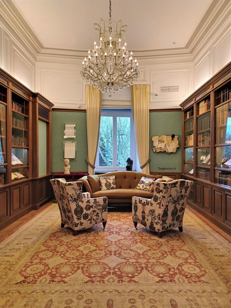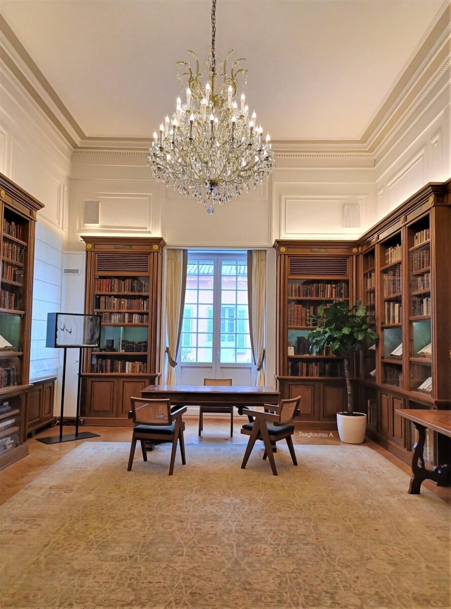 Στον πρώτο όροφο του κτιρίου βρίσκεται σήμερα η Ωνάσειος Βιβλιοθήκη. Σε μία από τις αίθουσες του ορόφου έχει μεταφερθεί το γραφείο του Αριστοτέλη Ωνάση από το Μόντε Κάρλο, με τα έπιπλα και τα προσωπικά του αντικείμενα.