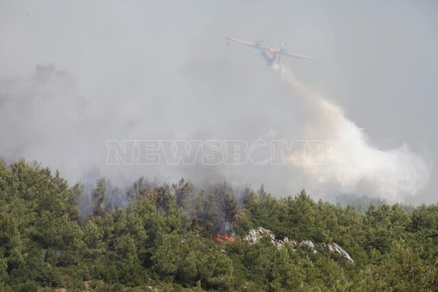 Σύμφωνα με την ενημέρωση της πυροσβεστικής η φωτιά δεν απειλεί οικισμό.