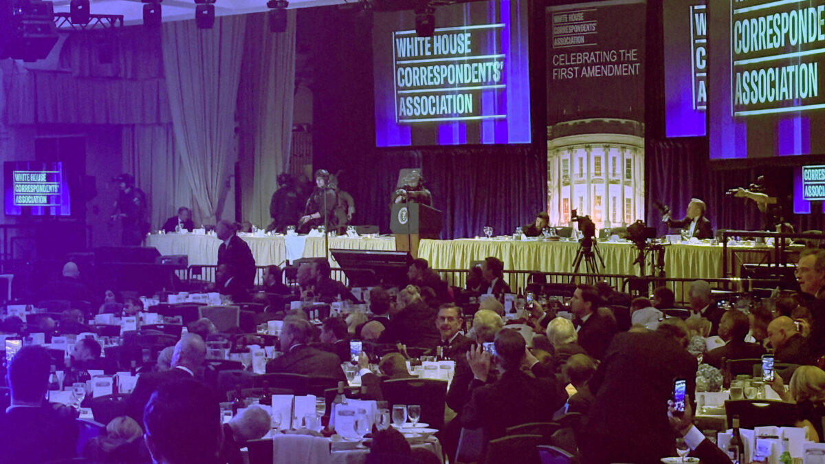 Το ετήσιο δείπνο των ένωσης ανταποκριτών του Λευκού Οίκου είχε μόλις αρχίσει, σύμφωνα με τους δημοσιογράφους του Γαλλικού Πρακτορείου που ήταν παρόντες, όταν ακούσθηκε μεγάλη αναταραχή στις εισόδους της αίθουσας.