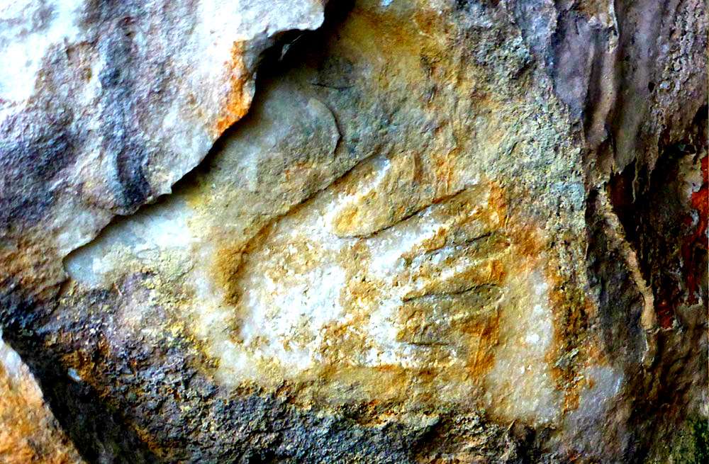 Ανάμεσά τους, το σκαλιστό αποτύπωμα ενός χεριού, το οποίο σύμφωνα με τους επισκέπτες του σημείου, τα τελευταία 20 – 25 χρόνια έχει κατά ανεξήγητο τρόπο αλλάξει θέση πολλές φορές.