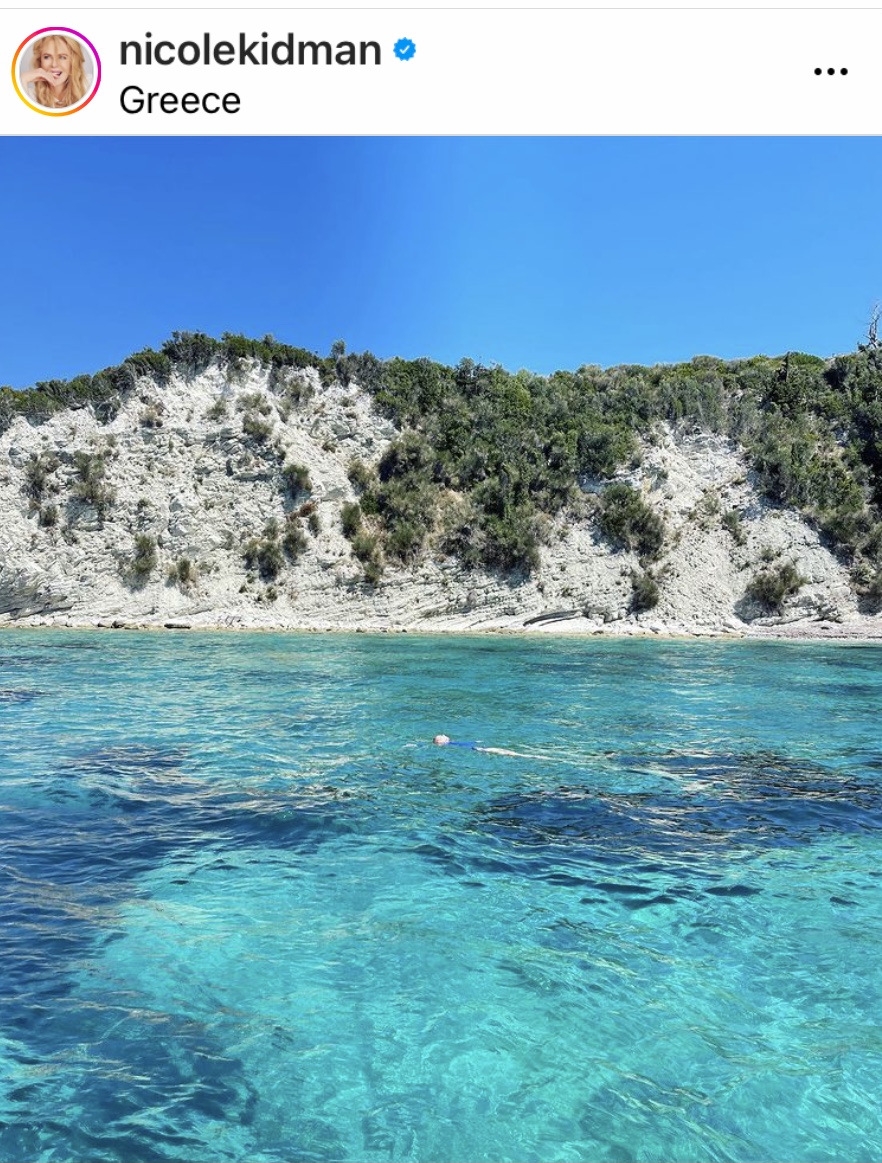 Η Νικόλ Κίντμαν με μια φωτογραφία της στο Ιnstagram, αποκάλυψε στους θαυμαστές της ότι βρισκόταν σε κάποιο ελληνικό νησί που όπως μάθαμε ήταν οι Παξοί.