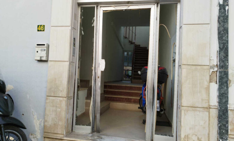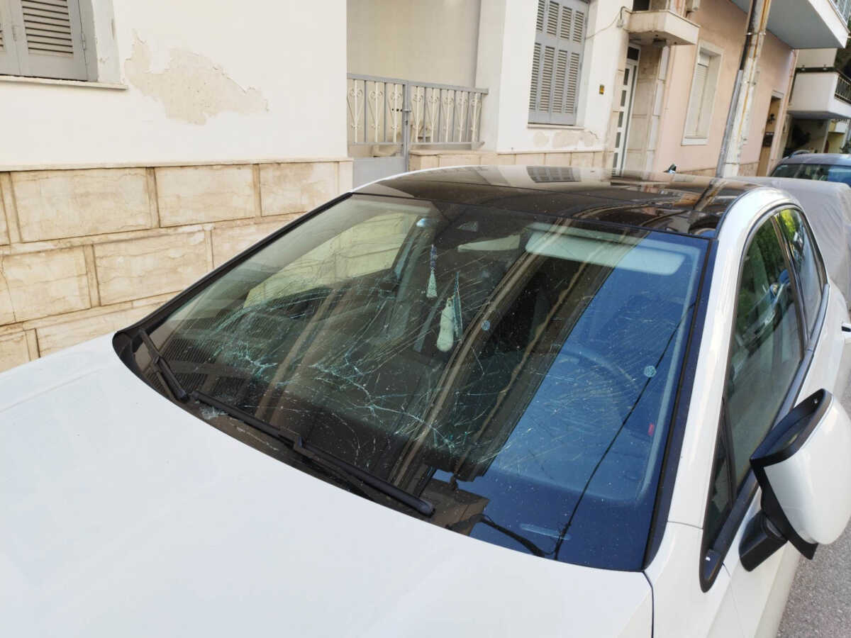 Στις φωτογραφίες φαίνεται η είσοδος να είναι διαλυμένη, αλλά και αυτοκίνητα που ήταν παρκαρισμένα μπροστά στην είσοδο της πολυκατοικίας στο Περιστέρι να έχουν επίσης υποστεί ζημιές.