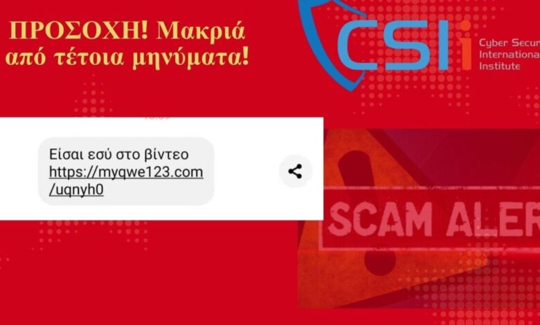 Την προσοχή των πολιτών εφιστά το CSI Institute καθώς βάσει αναφορών που γίνονται από συμπολίτες μας τις τελευταίες ημέρες παρατηρούμε απόπειρες/ επιθέσεις ηλεκτρονικού ψαρέματος με κακόβουλα μηνύματα τα οποία πληροφορούν τον παραλήπτη πως παρουσιάζεται ο ίδιος σε κάποιο video.Ειδικότερα, η νέα μορφή κακόβουλων μηνυμάτων καλεί τον χρήστη να ακολουθήσει κάποιον κακόβουλο σύνδεσμο δήθεν για να δει τo video με εκείνον.