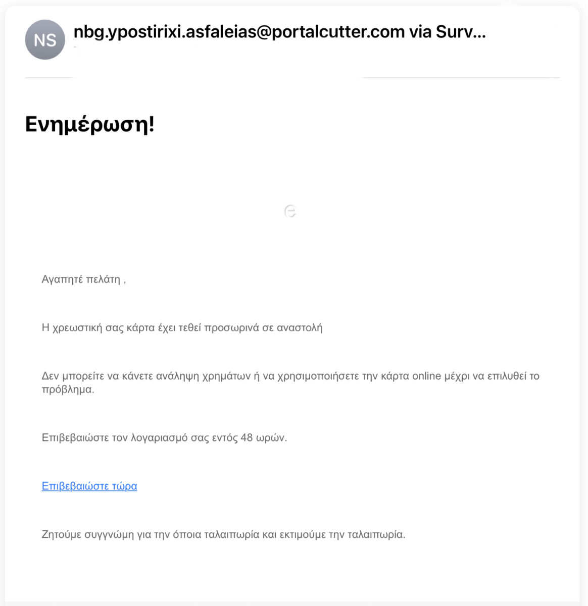 Πρόκειται γ ακόμη μια προσπαθεια υποκλοπης στοιχείων σας με τη γνωστή μεθοδο του phishing