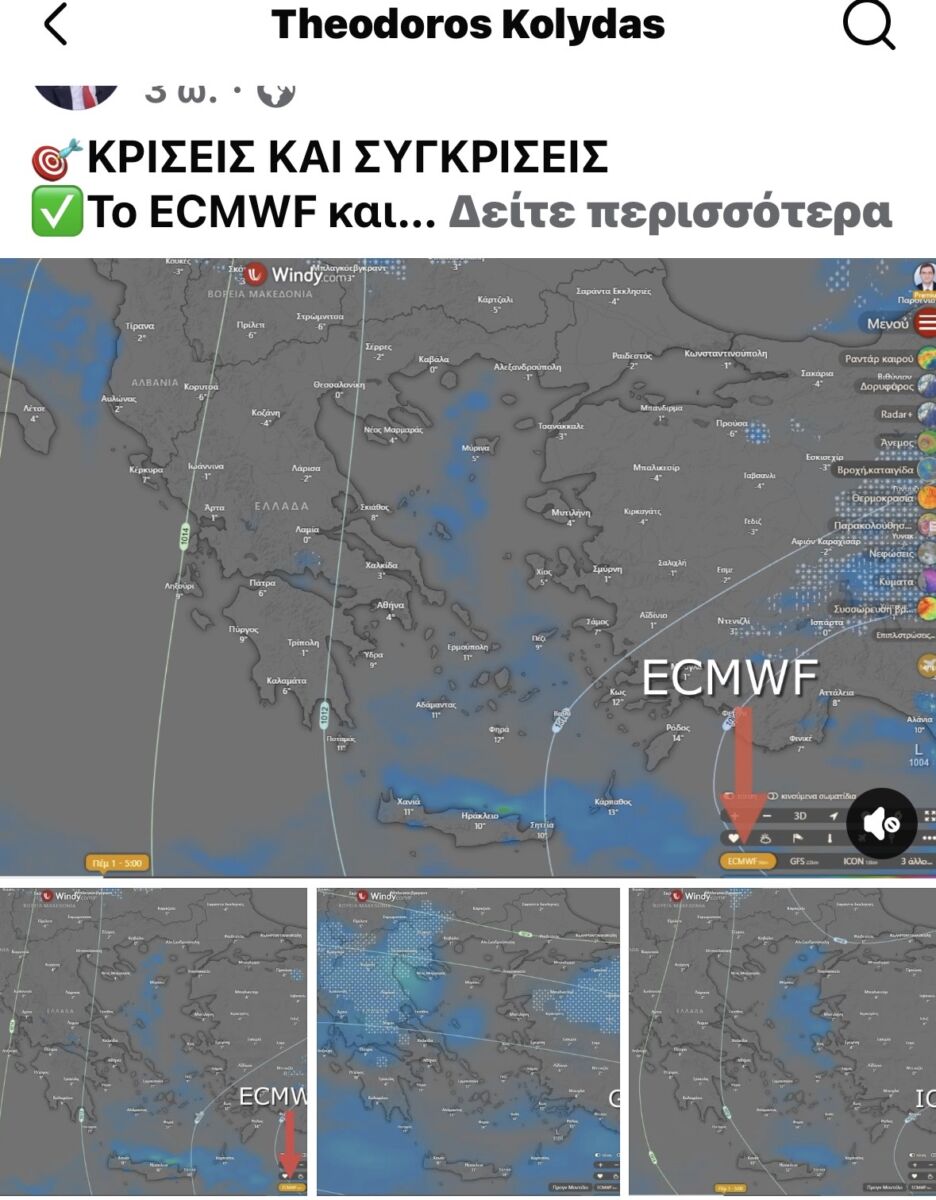 Τα προγνωστικά δεδομένα που εξετάζει ο πρώην επικεφαλής της ΕΜΥ προέρχονται από τα μοντέλα ECMWF, ICON και GFS.