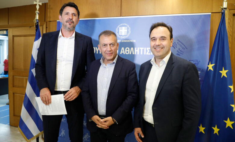 Την Κοινή Υπουργική Απόφαση για την «Υποχρέωση διεξαγωγής αθλητικών συναντήσεων καλαθοσφαίρισης της Α1 Εθνικής κατηγορίας ανδρών (Basket League) αποκλειστικά σε αθλητικές εγκαταστάσεις, που διαθέτουν το προβλεπόμενο σύστημα ελέγχου εισιτηρίων και ταυτοποίησης των εισερχόμενων θεατών», παρέδωσαν ο αναπληρωτής Υπουργός Αθλητισμού, Γιάννης Βρούτσης και ο Υπουργός Ψηφιακής Διακυβέρνησης, Δημήτρης Παπαστεργίου, στον Γενικό Διευθυντή του Ελληνικού Συνδέσμου Ανωνύμων Καλαθοσφαιρικών Εταιρειών(ΕΣΑΚΕ), Ευθύμη Ρεντζιά.