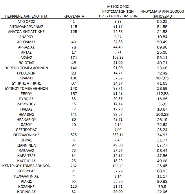 Η Αττική ξεπέρασε μετά από καιρό τα 1000 κρούσματα (1021), η Θεσσαλονίκη «έπιασε» τα 828, ενώ αθροιστικά η Θεσσαλία κατέγραψε 730 κρούσματα!