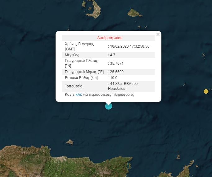 Ο σεισμός έγινε στις 19 :32, σε θαλάσσια περιοχή κοντά στη μεγαλόνησο της Κρήτης.
