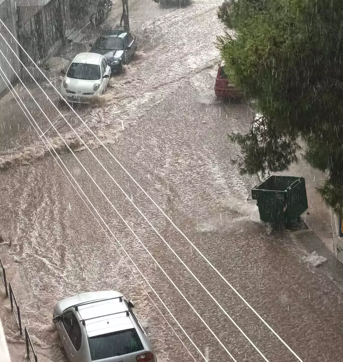 Αν και χωρίς βαριά συννεφιά, οι ουρανοί «άνοιξαν» λίγο μετά τις 6 το απόγευμα και το ξαφνικό μπουρίνι έπιασε πολλούς «απροετοίμαστους». Χαρακτηριστικές είναι οι εικόνες από την βροχή και το χαλάζι που έπεσε στην περιοχή του Ζωγράφου με αποτέλεσμα να πλημμυρίσουν οι δρόμοι και να μετατραπούν σε ποτάμια.