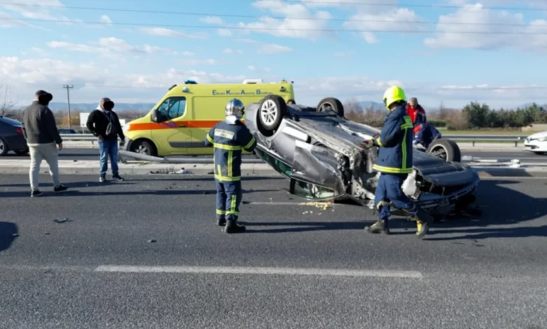 Σοκαριστικό τροχαίο στη Λάρισα: ΙΧ τούμπαρε στη μέση του δρόμου -Στο νοσοκομείο 4 άτομα