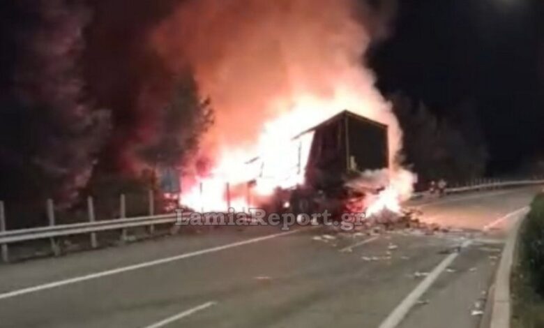 Σοβαρό τροχαίο ατύχημα στη Λαμία: Ανατράπηκε νταλίκα και τυλίχθηκε στις φλόγες