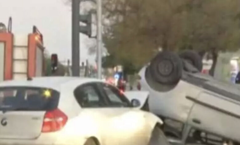 Η σφοδρή σύγκρουση έγινε στο φανάρι της Βουλιαγμένης με τη Γερουλάνου, στο ύψος της Αλίμου, το ένα από τα δυο αυτοκίνητα αναποδογύρισε, με αποτέλεσμα να εγκλωβιστεί σε αυτό ο οδηγός του.