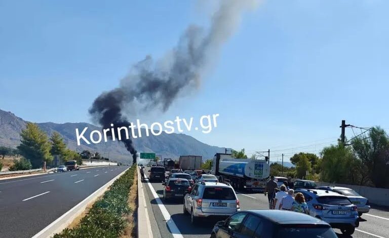 Στις φλόγες βυτιοφόρο στο ύψος της Κινέτα – Κλειστή και στα δύο ρεύματα η Αθηνών-Κορίνθου