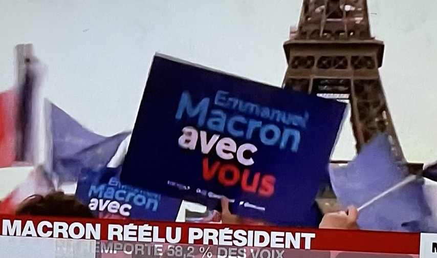Υποστηρικτές του Εμανουέλ Μακρόν έχουν αρχίσει να συγκεντρώνονται στο Champ de Mars, όπου ο απερχόμενος πρόεδρος θα απευθύνει τη νικητήρια ομιλία του. Το 2017, γιόρτασε τη νίκη του στο προαύλιο του Λούβρου, οπότε παραμένει στο προσκήνιο και στοχεύει να αφήσει το στίγμα του σε μια ακόμη εμβληματική παρισινή τοποθεσία. Το κλίμα είναι πανηγυρικό ενώ έχουν συγκεντρωθεί γύρω στα 4.000 άτομα.