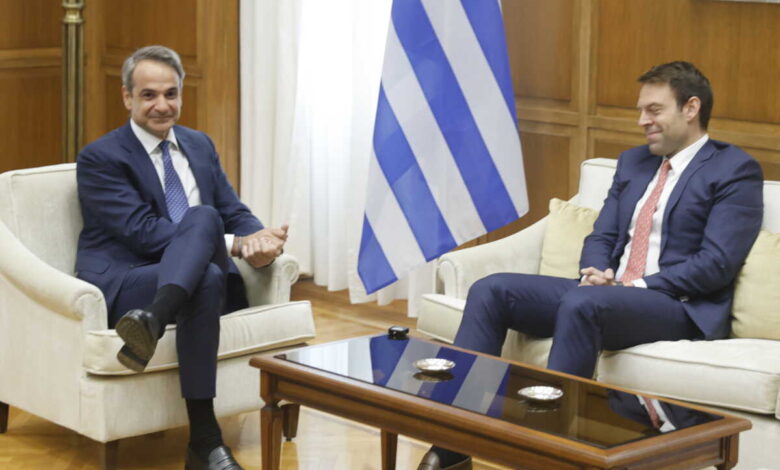 Συνάντηση Κυριάκου Μητσοτάκη με τον Στέφανο Κασσελάκη στη Βουλή