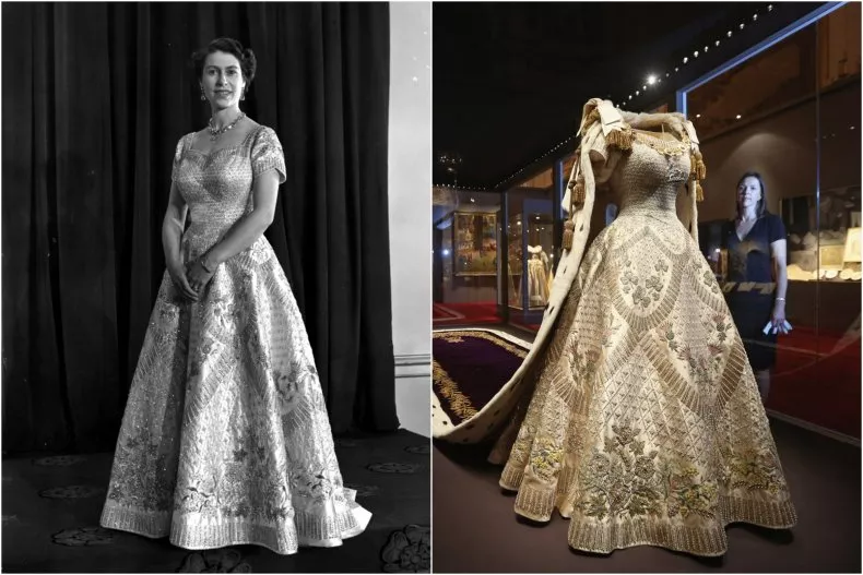 Το φόρεμα της στέψης της κατασκευάστηκε από τον Sir Norman Hartnell με τα ενσωματωμένα λουλούδια να συμβολίζουν τα μέλη της κοινοπολιτείας.