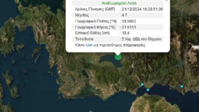 Σεισμός 4,7 ρίχτερ στην Αιτωλοακαρνανία – Αισθητός στο Αγρίνιο και την Πάτρα