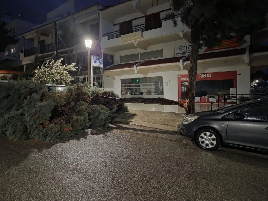 Στο κέντρο της πόλης, οι ισχυρές ριπές ανέμου το βράδυ της Τετάρτης προκάλεσαν την εκρίζωση μεγάλου δέντρου επί της οδού Παπαλουκά, το οποίο, κατά την πτώση του, συμπαρέσυρε παρακείμενο τοιχίο. Στο σημείο έσπευσαν άμεσα συνεργεία του Δήμου και της Πολιτικής Προστασίας για την αποκατάσταση των ζημιών.